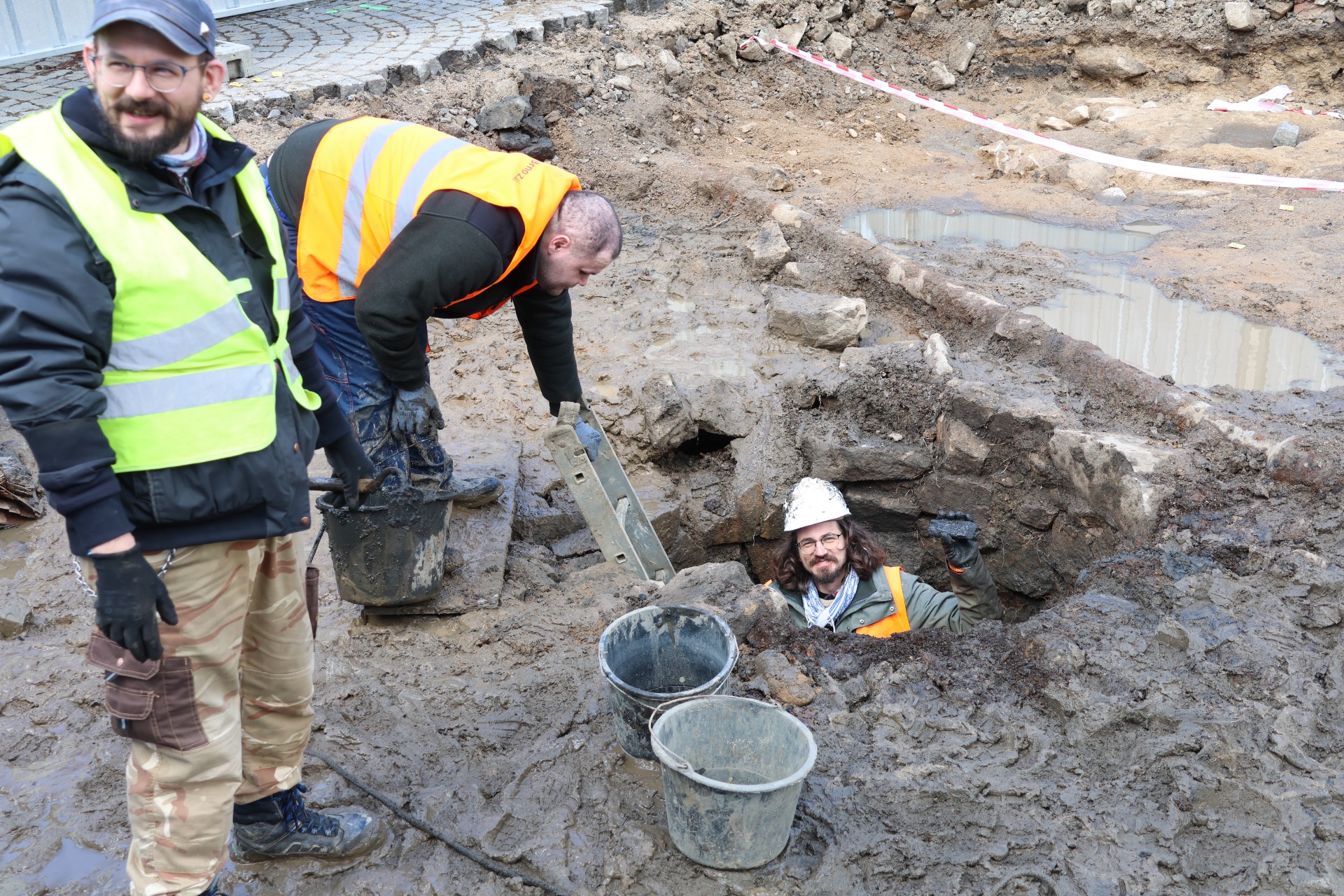 Kousek vedle studny odborníci objevili nejspíš základy pranýře. "Jsme si tím jistí na devadesát procent," podotýká Kochan s tím, že jde o zděnou kruhovou stavbu o průměru asi 2,5 metru. Ve středověkých městech pranýř býval na frekventovaných místech jako třeba před kostelem nebo radnicí.