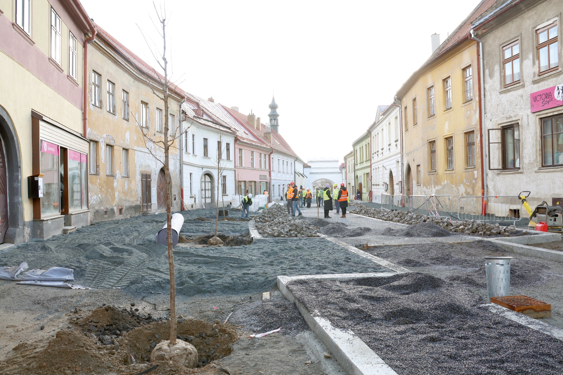 Komunikace v Komenského ulici od Dózy až na Šebestiánské náměstí je vydlážděná, nyní dostávají novou žulovou kostku i přilehlé chodníky. V ulici už jsou vysázené nové stromy. Zprůjezdněná má být do Vánoc.